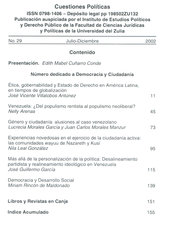 2001 n. 27; jul. - dic. (Sumario Imagen) 2 False /galerias/imagenes/revistas/sumarioImagen/cuest-polit-n27-2001.gif Se abre en ventana nueva: Sumario Default True