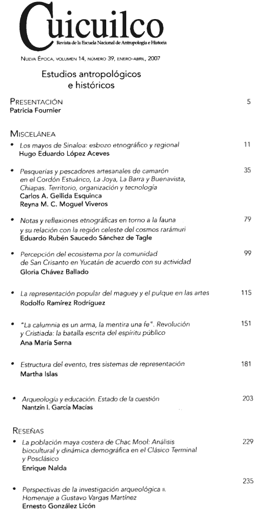 2007 N.E.; vol. 14; n. 39 (Sumario Imagen) 2 False /galerias/imagenes/revistas/sumarioImagen/cuicuilco-2007-39.gif Se abre en ventana nueva: Sumario imagen del núm. 39 de 2007. Default True