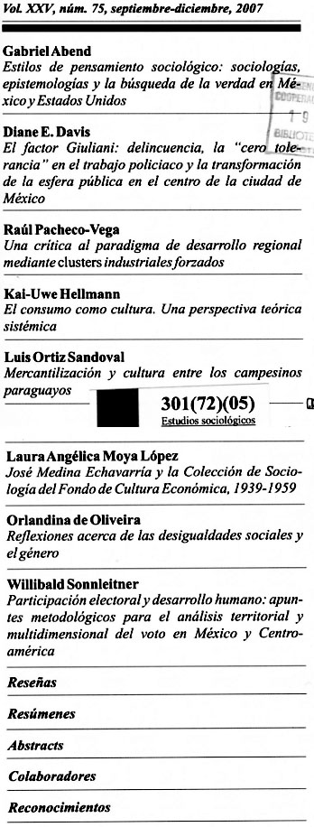 2007 vol. 25; n. 75; sep. - dic. (Sumario Imagen) 22 False /galerias/imagenes/revistas/sumarioImagen/estu-sociol-mex-n75-2007.jpg Se abre en ventana nueva: Sumario Default True