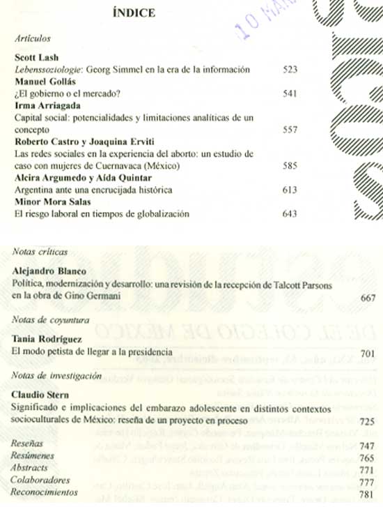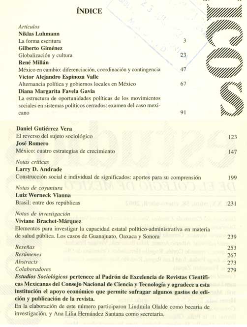 2003 vol. 21; n. 62; mayo - ag. (Sumario Imagen) 9 False /galerias/imagenes/revistas/sumarioImagen/estu-sociol-mex-n62-2003.jpg Se abre en ventana nueva: Sumario Default True