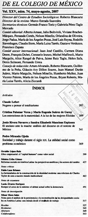 2007 vol. 25; n. 73; en. - abr. (Sumario Imagen) 20 False /galerias/imagenes/revistas/sumarioImagen/estu-sociol-mex-n73-2007.jpg Se abre en ventana nueva: Sumario Default True