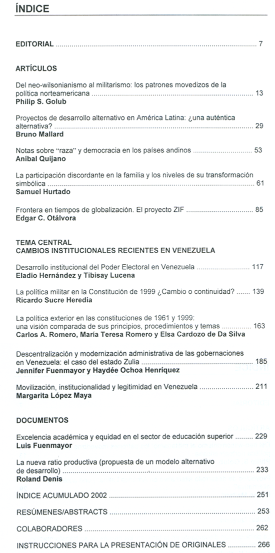 2003 vol. 9; n. 2; mayo - ag. (Sumario Imagen) 8 False /galerias/imagenes/revistas/sumarioImagen/rvtvnzecncincsoc-n2-2003.gif Se abre en ventana nueva: Sumario Default True