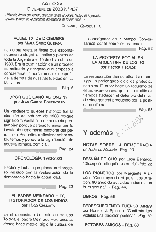2004 vol. 36; n. 438; en. (Sumario HTML) 45 False http://www.todoeshistoria.com.ar/ Se abre en ventana nueva: 2004 vol. 36; n. 438; en. (Sumario HTML) Default True