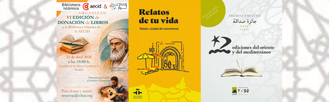 •  Con ocasión de la Semana del Libro y, como en ocasiones anteriores, la Biblioteca Islámica de la AECID organiza con Cihar la VI donación de libros en la sala de lectura. Estáis invitados a participar, leer textos de Averroes y escuchar al músico Houssam. Será el 21 de abril a las 19:00 h y se ha de reservar previamente
