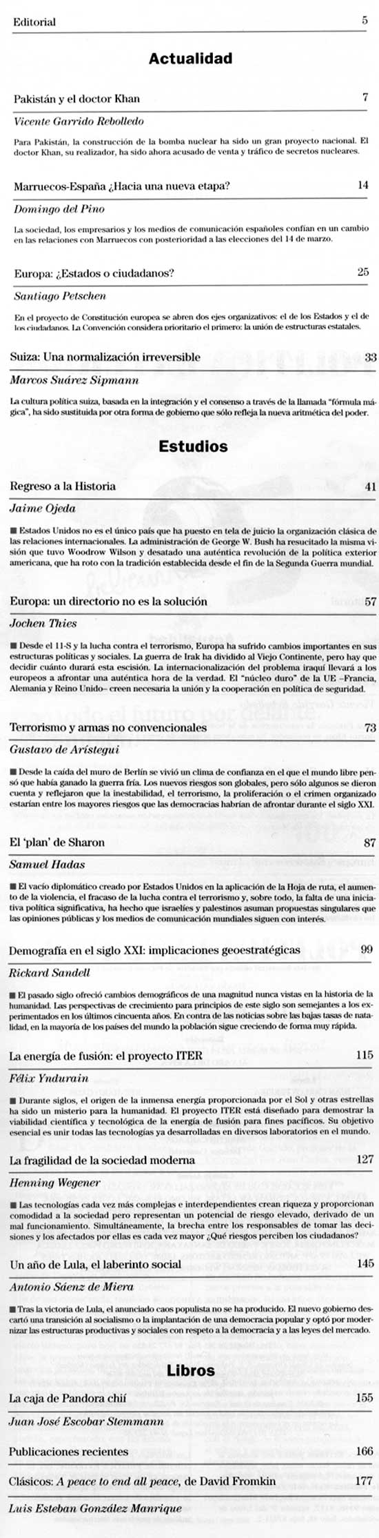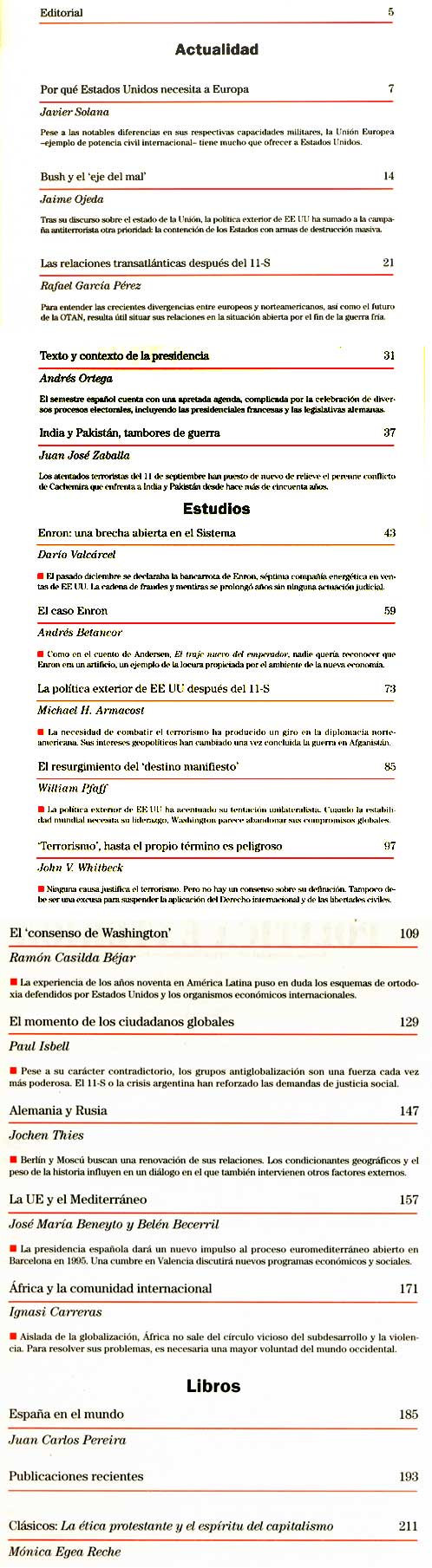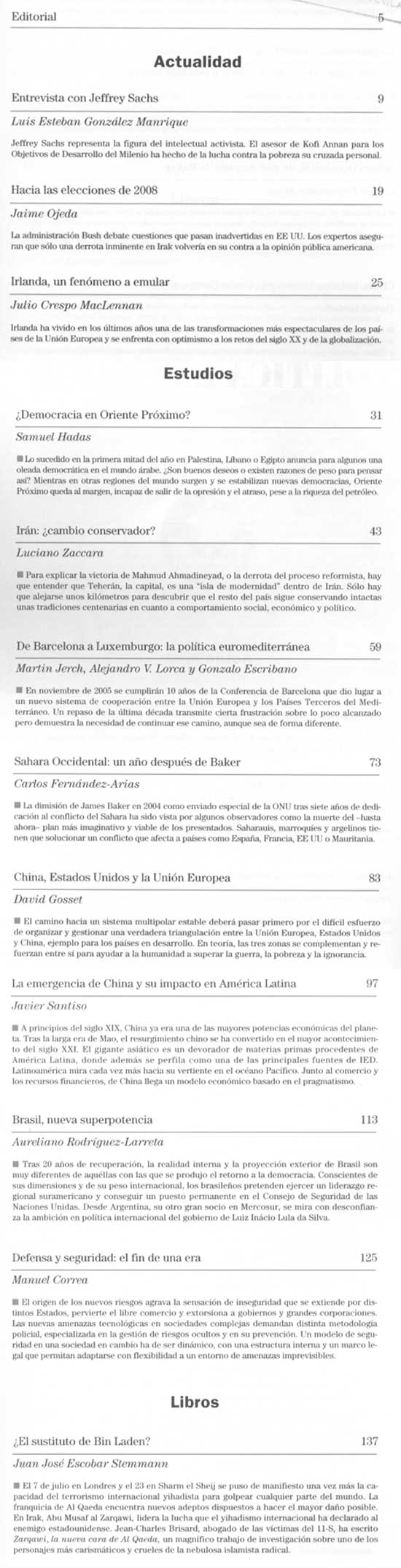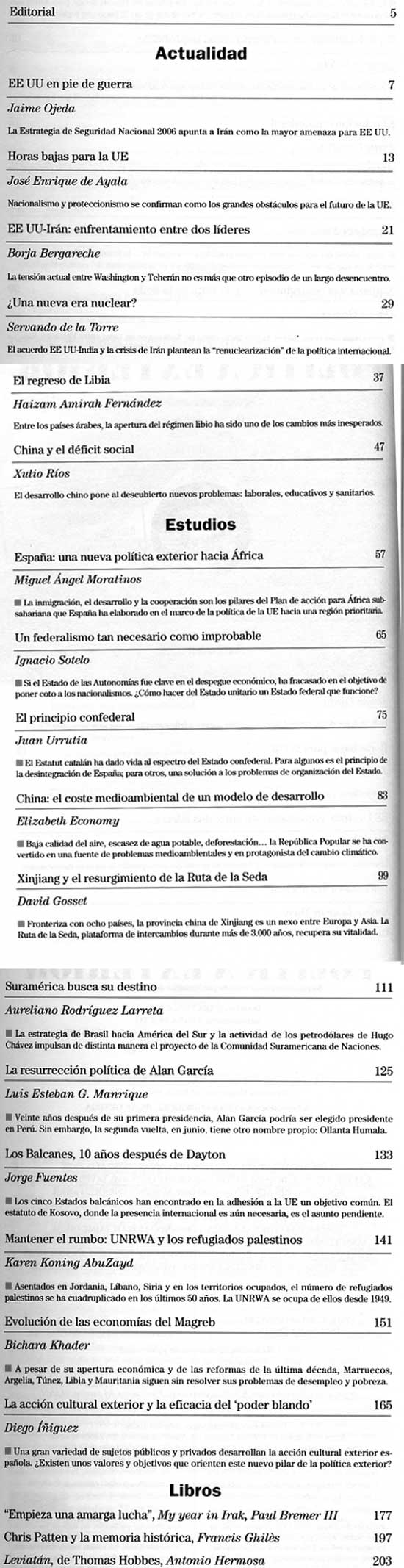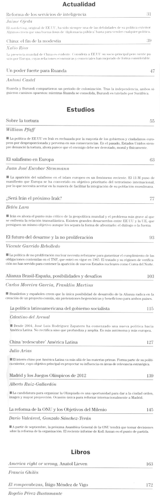 2007 vol. 21; n. 116; marzo - abr. (Sumario HTML) 41 False http://www.politicaexterior.com/?m=1&indice=yes&na=114&revista=1 Se abre en ventana nueva: 2007 vol. 21; n. 116; marzo - abr. (Sumario HTML) Default True