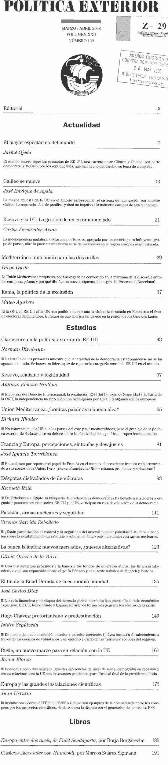 2008 vol. 22; n. 122; mar. - abr. (Sumario Imagen) 3 False /galerias/imagenes/revistas/sumarioImagen/pol-ext-2008-122.gif Se abre en ventana nueva: Sumario (PDF) Default True