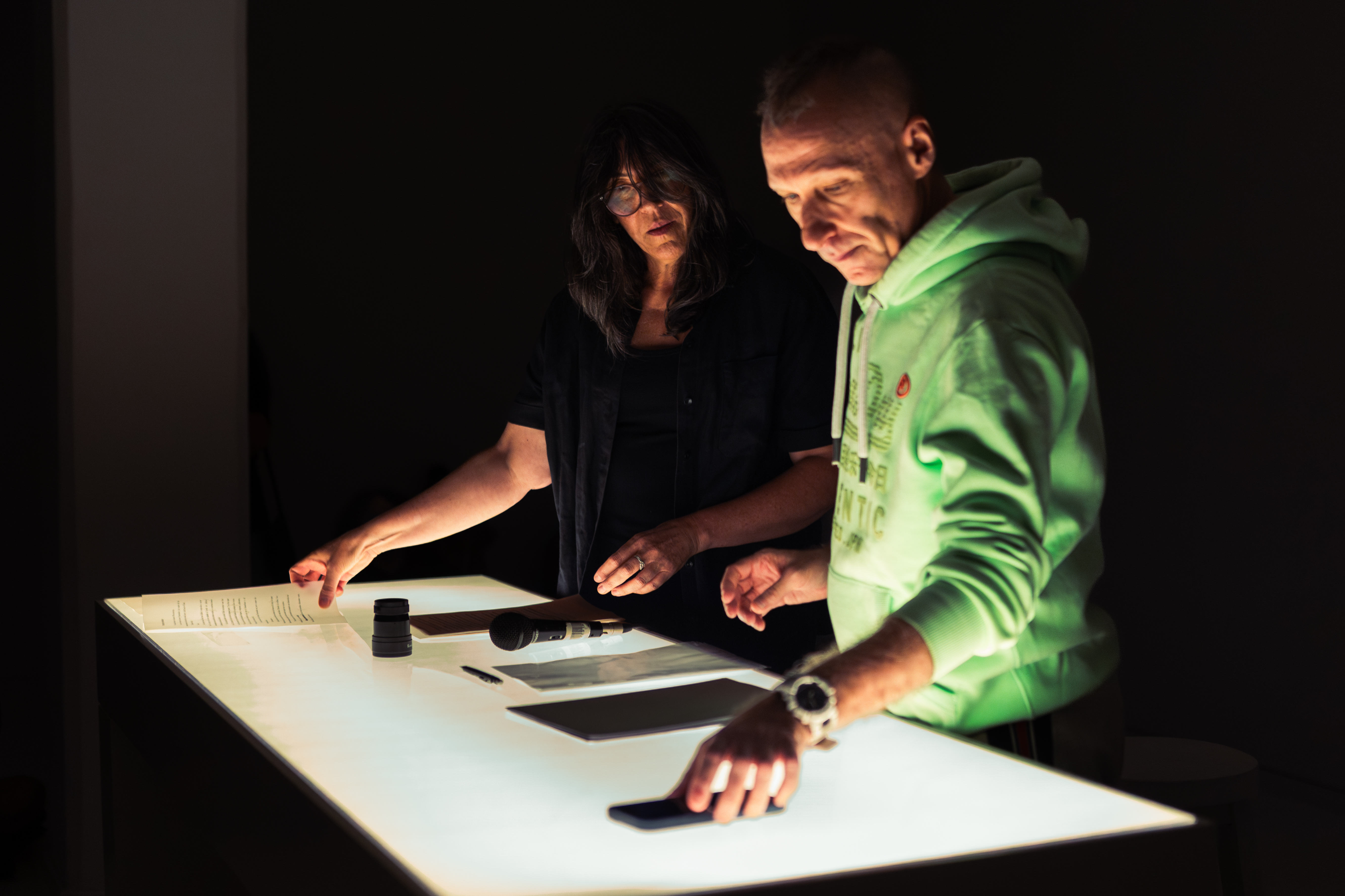 La fotógrafa Matilde Campodónico y el dramaturgo y director teatral Sergio Blanco trabajan juntos desde hace varios años. Esta exposición reúne dos de sus proyectos en común en un mismo espacio y tiempo.