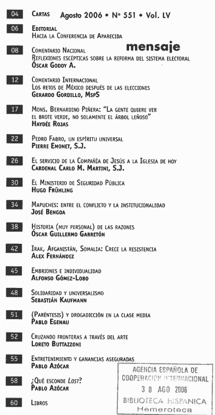 2006 vol. 55; n. 551; ag. (Sumario Imagen) 53 False /galerias/imagenes/revistas/sumarioImagen/mensaje-2006-551.gif Se abre en ventana nueva: Sumario imagen del núm. 551 de 2006. Default True