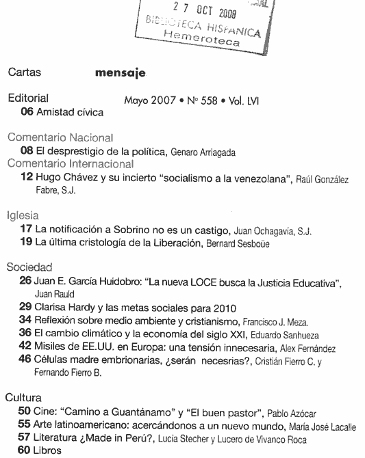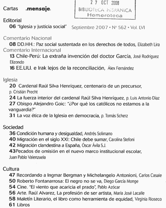 2001 vol. 50; n. 503, oct. (Sumario HTML) 7 False http://www.mensaje.cl Se abre en ventana nueva: 2001 vol. 50; n. 503, oct. (Sumario HTML) Default True
