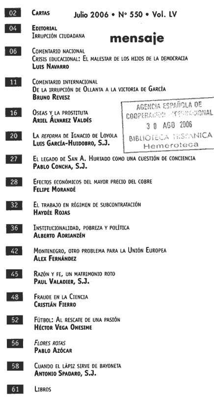 2006 vol. 55; n. 547; marzo - abr. 49 False /ES/Paginas/REVISTAS/SERVICIOS/BIBLIOTECAS/REVISTAS/HISPANICA/mensaje.aspx 2006 vol. 55; n. 547; marzo - abr. Default