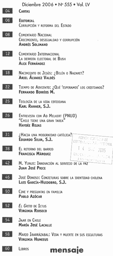 2004 vol. 53; n. 535; dic. (Sumario HTML) 38 False http://www.mensaje.cl Se abre en ventana nueva: 2004 vol. 53; n. 535; dic. (Sumario HTML) Default True