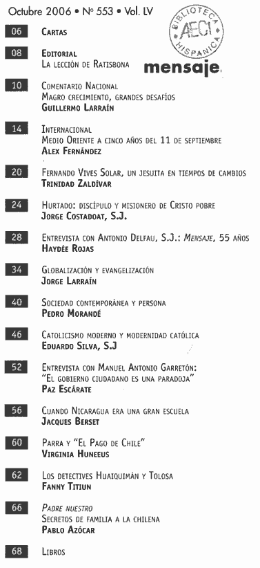 2004 vol. 53; n. 532; sept. (Sumario HTML) 35 False http://www.mensaje.cl Se abre en ventana nueva: 2004 vol. 53; n. 532; sept. (Sumario HTML) Default True