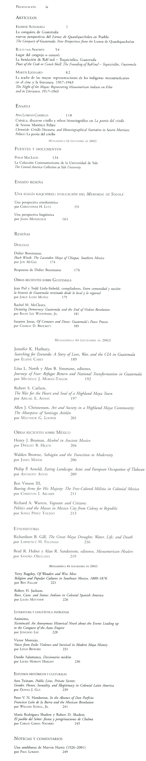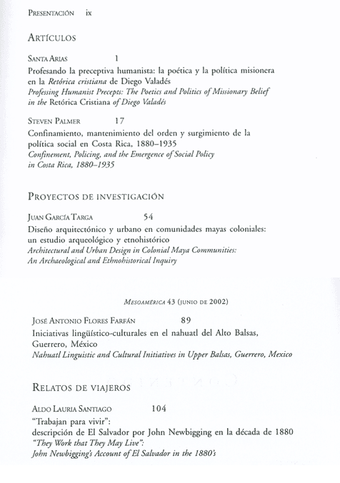 2002 año 23; n. 44; dic. (Sumario Imagen) 4 False /galerias/imagenes/revistas/sumarioImagen/mesoamerica-n44-2002.gif Se abre en ventana nueva: Sumario Default True