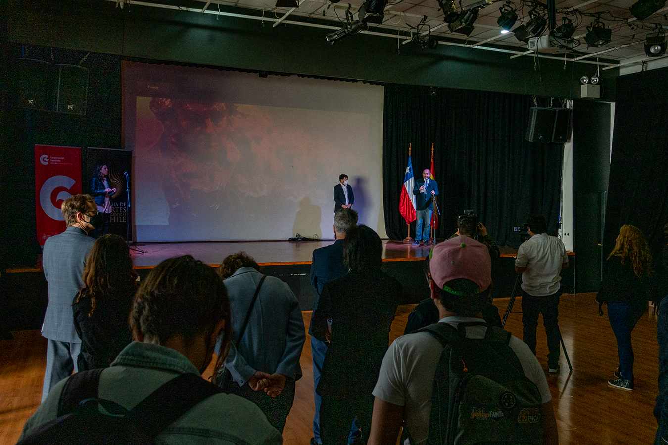 Jorge Peralta, Encargado de Negocios de la Embajada de España, dio la bienvenida al evento que reunió al mundo audiovisual en el Centro Cultural de España. Contó con la participación del Subsecretario de las Culturas y las Artes Juan Carlos Silva; la Directora Ejecutiva de la Academia de Cine de Chile, Josefina Undurraga y Alexandra Galvis, productora de “La cordillera de los sueños”, premiado documental de Patricio Guzmán que fue elegido por la Academia para representar a nuestro país en la próxima edición de los premios Goya.