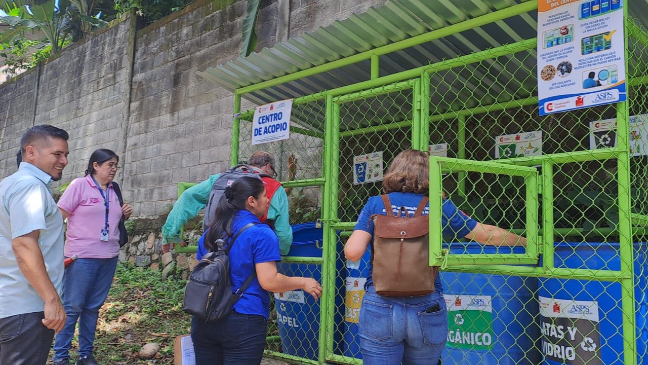 Posteriormente se movilizaron para conocer los “Centros de Acopio de Desechos Sólidos; en el casco urbano de Jocoaitique, con el objetivo de conocer la infraestructura de los sistemas y la forma en que las familias capacitadas hacen uso de los centros de acopio.