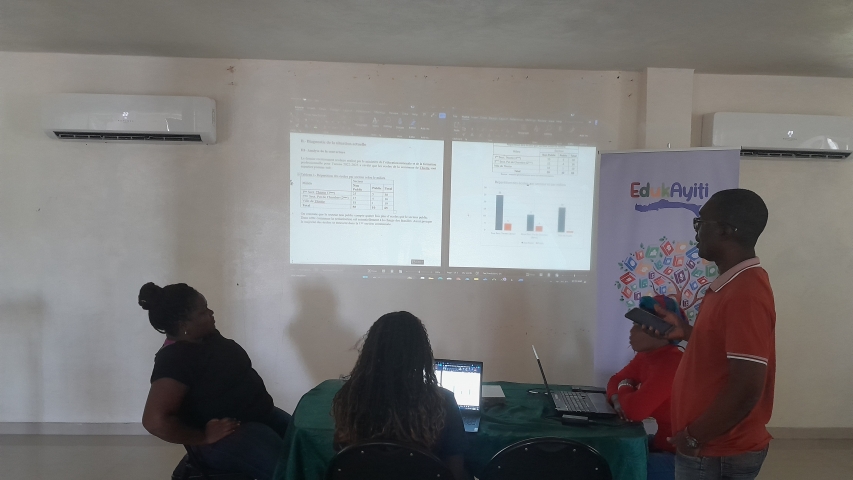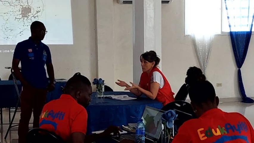 Esta actividad, enmarcada dentro del proyecto denominado EDUKAYITI e implementada, entre otros actores, por el Ministerio de Educación Nacional y la Formación Profesional (MENFP) a través de la Dirección Departamental del Sud-Est, tiene como objeto facilitar una formación práctica a técnicos de las Direcciones Técnicas del MENFP y de la Dirección Departamental, con el fin de facilitar la adquisición de competencias y, por tanto, autonomía para la elaboración de los mismos. Los mapas escolares son uno de los instrumentos de base y fundamentales para la planificación educativa y, por tanto, una herramienta importante para el MENFP. La elaboración de los mapas ha pasado ya por varias fases, entre ellas, formación básica sobre la temática, la validación de una metodología nacional que marca las directrices para la elaboración de los mapas, la recopilación de datos en terreno (hogares y centros educativos de educación básica y formación profesional) y el tratamiento inicial de los datos. Esta formación permite avanzar un paso más, facilitando una formación práctica que se materializa en la elaboración de dos mapas escolares: uno a nivel preescolar y fundamental y otro a nivel de secundaria y formación profesional, para la comuna de Thiotte.