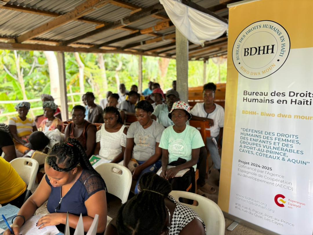 Consciente de la situación, el BDHH, con una contribución de 250.000 euros de la AECID, ha implementado este proyecto para la "Defensa de los derechos humanos, mujeres, niños y grupos vulnerables en Puerto Príncipe, Les Cayes, Côteaux y Aquin". En este Día Internacional de los Derechos Humanos, es importante destacar los logros del proyecto.