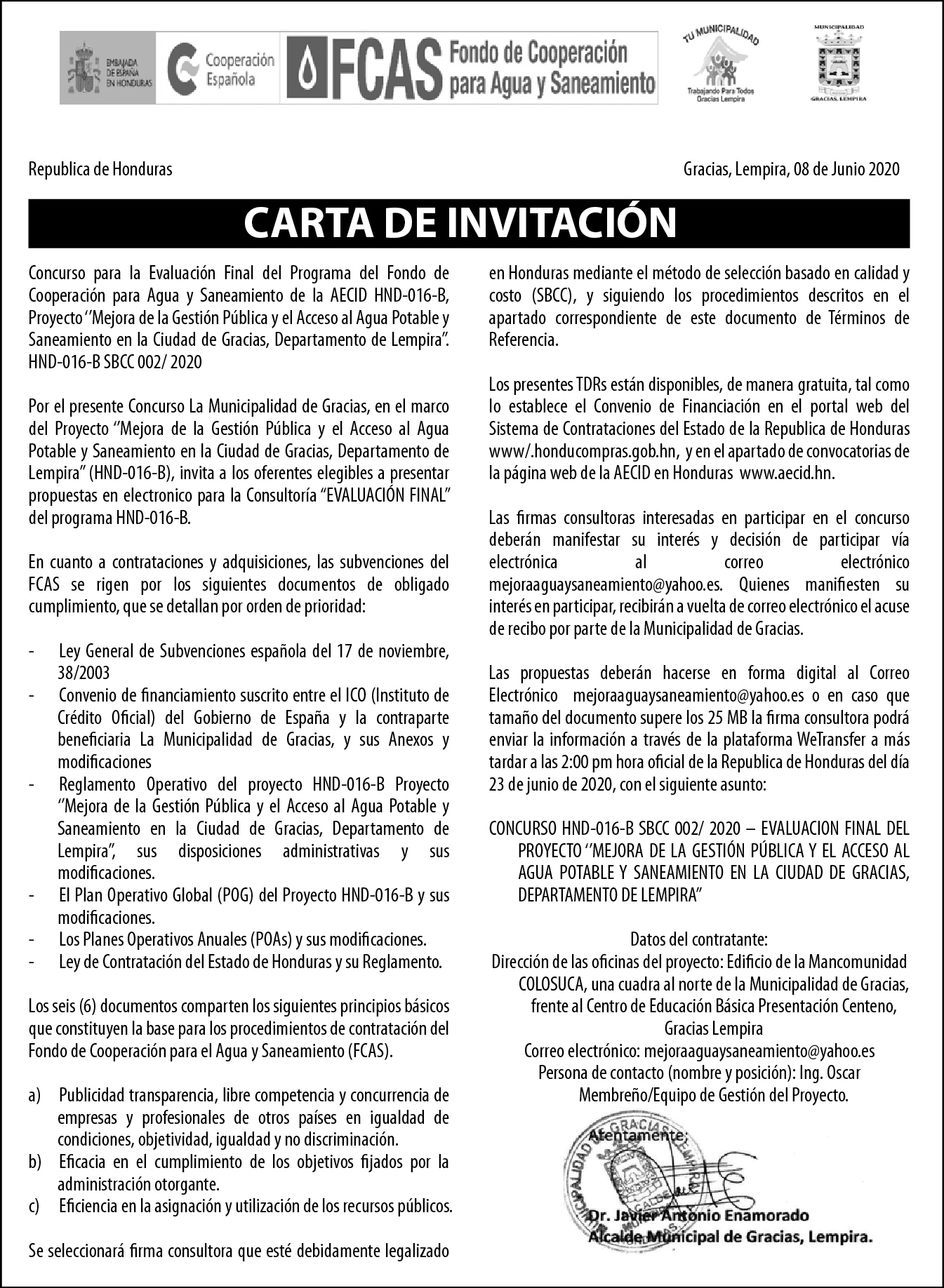 Título del anuncio: FCAS_Consultoría para Evaluación Final HND-016-B